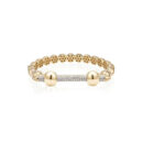 The Diamond Bar Bracelet in 18K Yellow Gold is an epitome of sophistication. designed for the modern woman who appreciates timeless luxury with a sleek edge. A pavé-set diamond bar forms the radiant centerpiece. seamlessly integrated into a polished gold band that balances strength and sparkle.