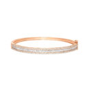 The Triple Row Diamond Bangle is a stunning blend of elegance and luxury. Crafted in rose gold and adorned with pave round and baguette-cut diamonds. this intricate design adds a touch of sophistication. making it perfect for special occasions or everyday wear.